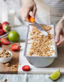Die Palette eignet sich durch den abgewinkelten Griff besonders gut zum Einstreichen von Torten mit Ganache oder Buttercreme.