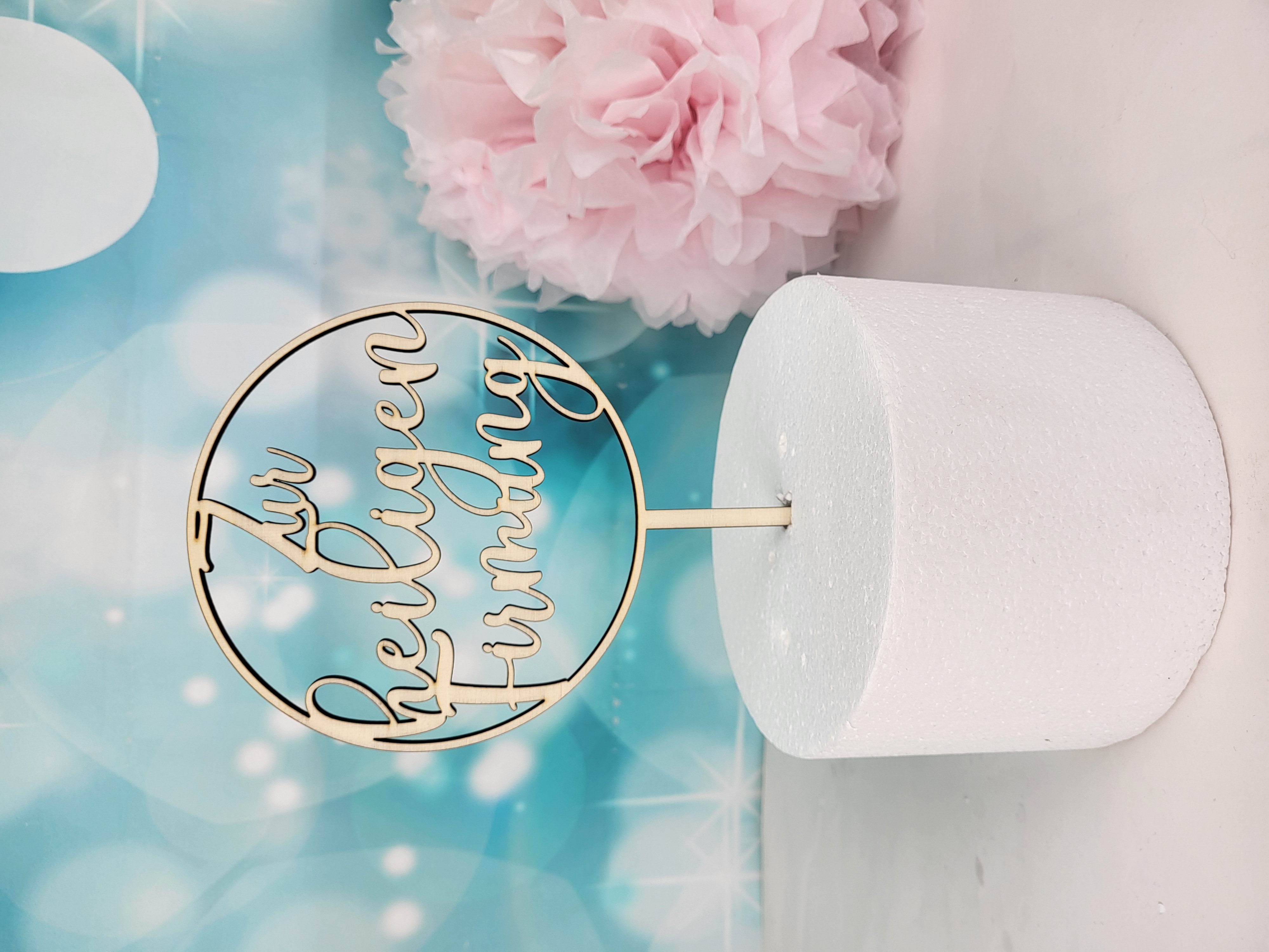 Cake Topper aus Holz mit Schriftzug "Zur heiligen Firmung"