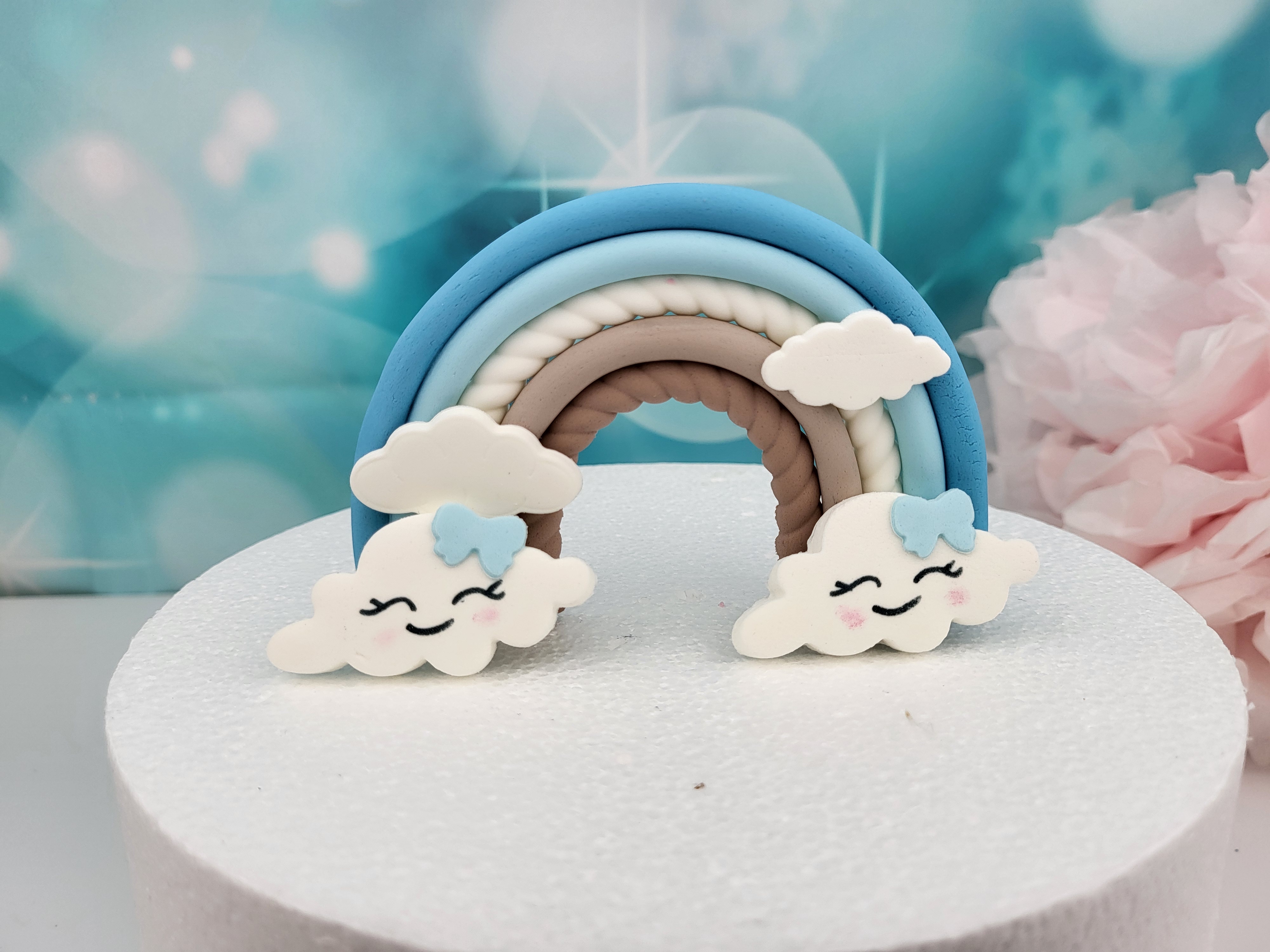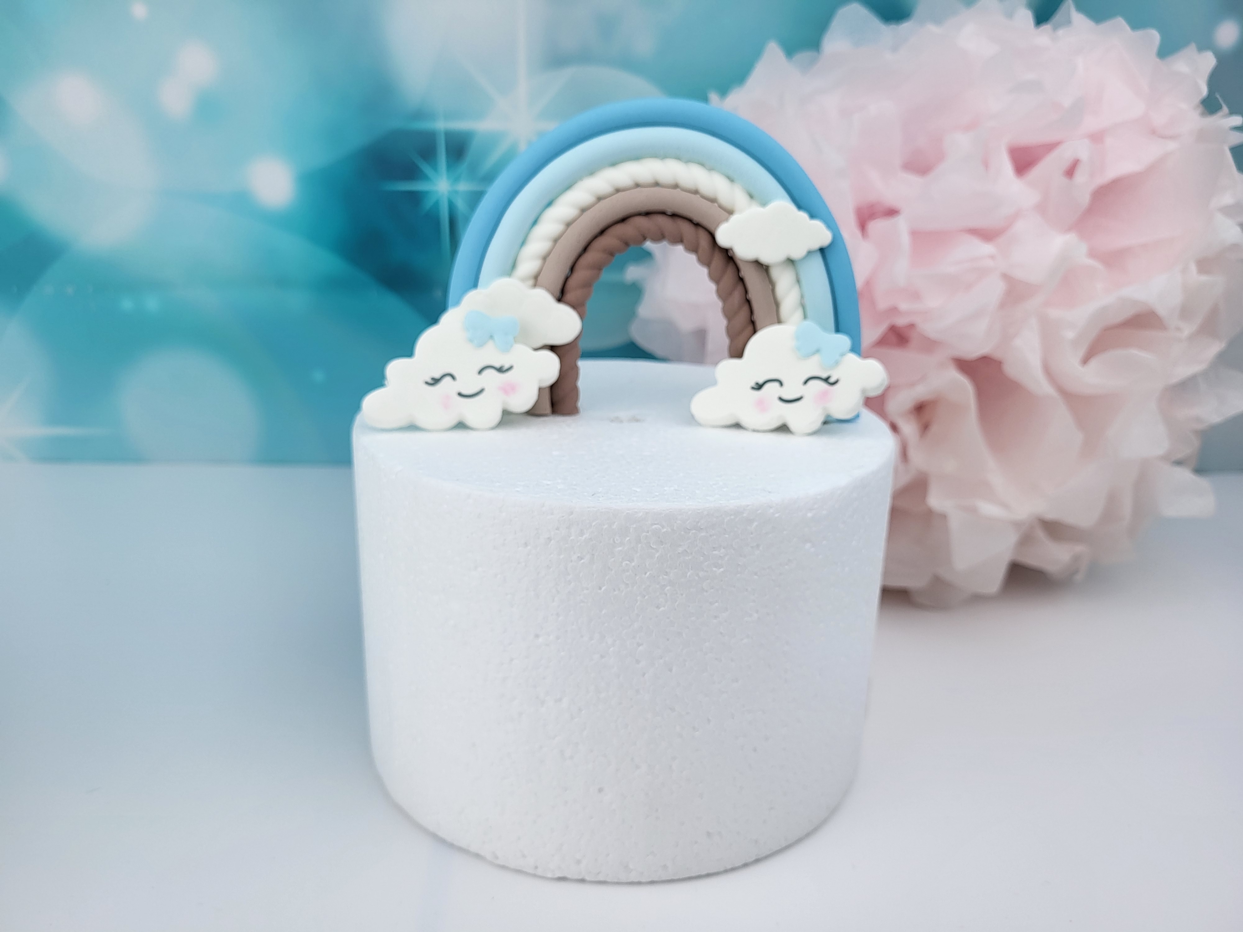 Ein wunderschöner handgemachter Topper Regenbogen mit Wolken in blau. Perfekt für Ihre Torte, egal ob Einhorn, Kommunion, Taufe oder Geburtstag.