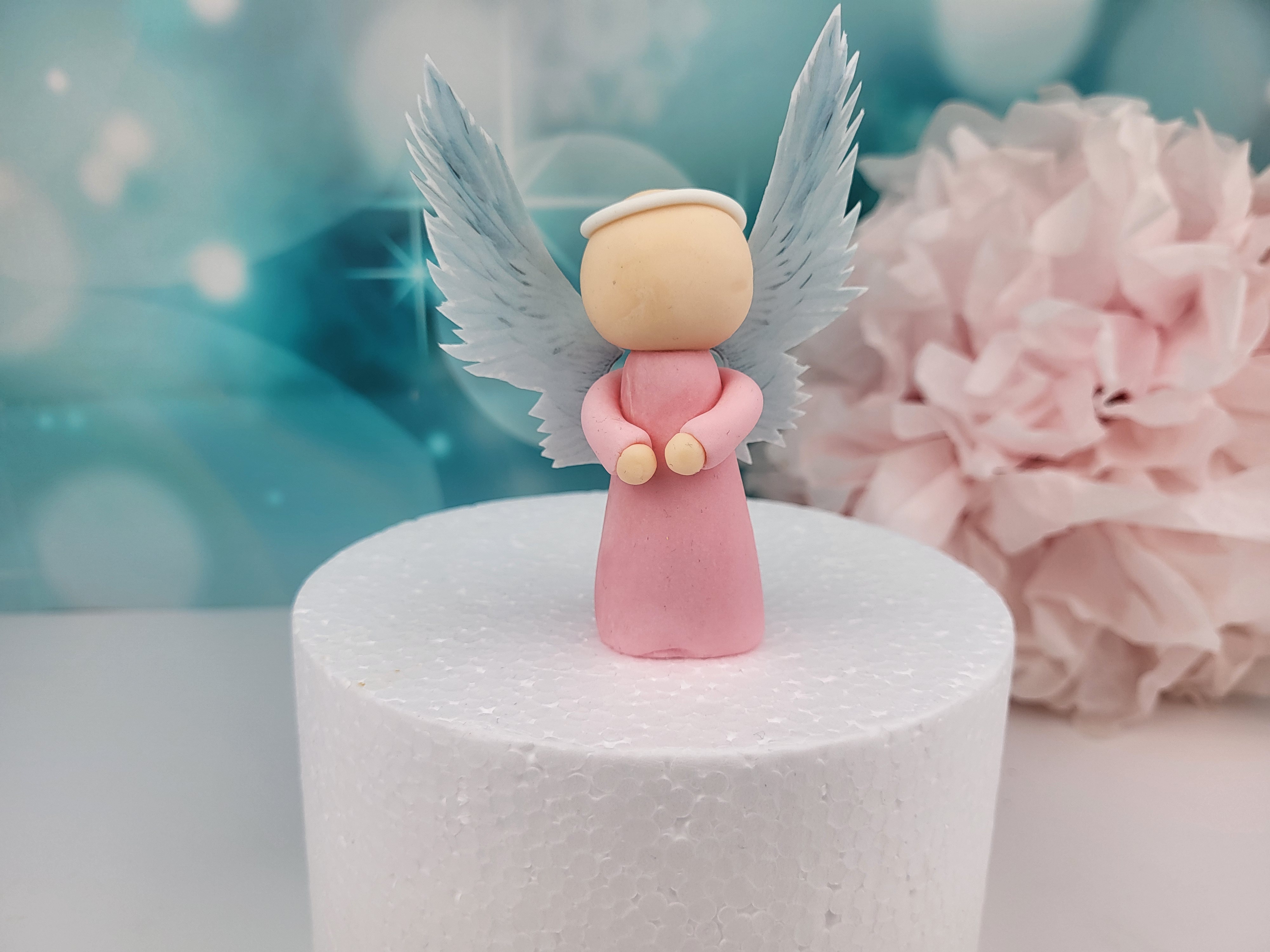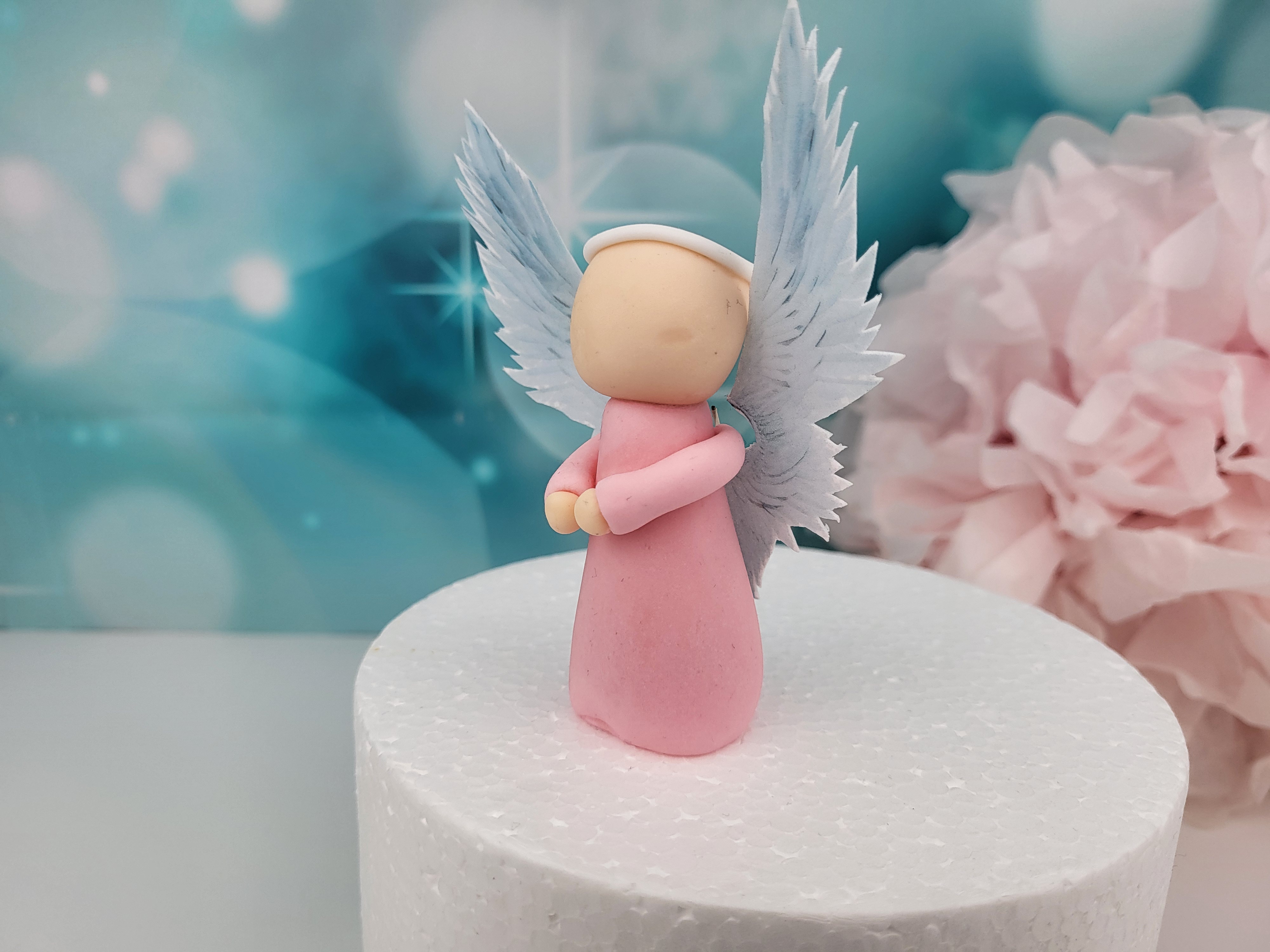 Dieser süße, handmodellierte Engel ist der Hingucker auf deiner Torte.