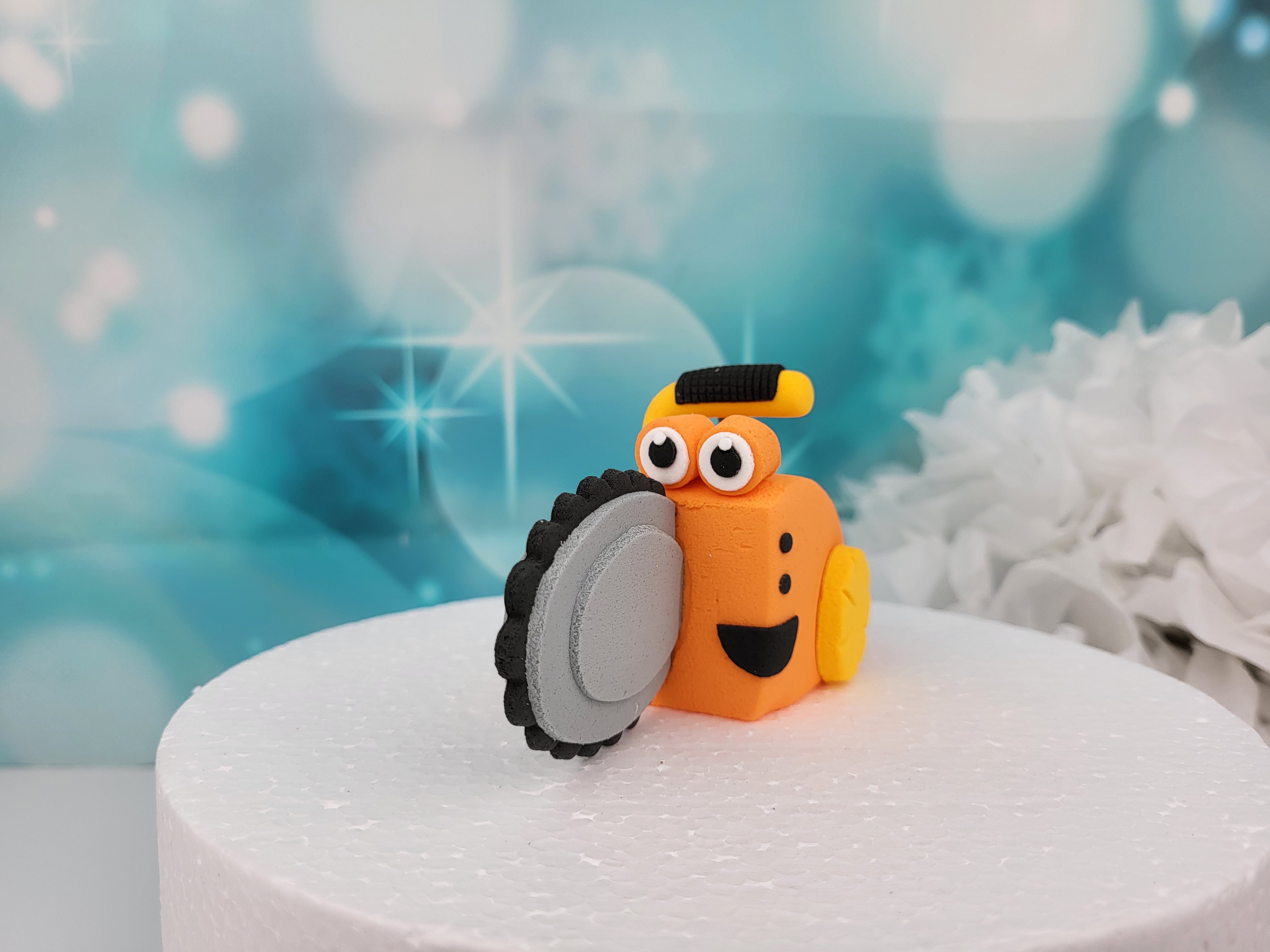 • Design: Die Figur stellt eine fröhliche orangefarbene Motorsäge dar, die mit einem freundlichen Gesicht versehen ist, um Kinderherzen höher schlagen zu lassen.