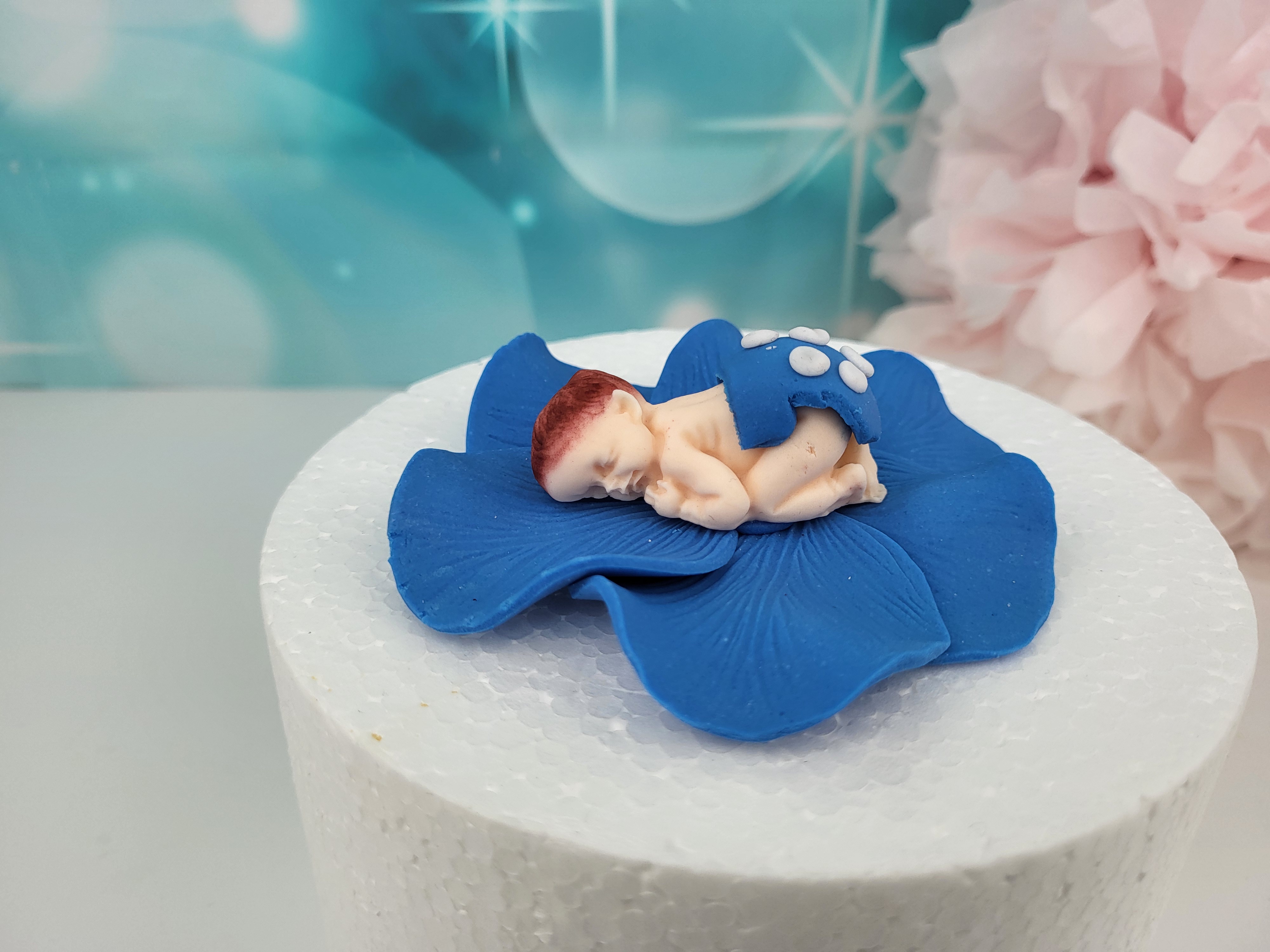 Dieses Baby ist handgemacht aus Zuckermasse und mit Farbpaste eingefärbt.