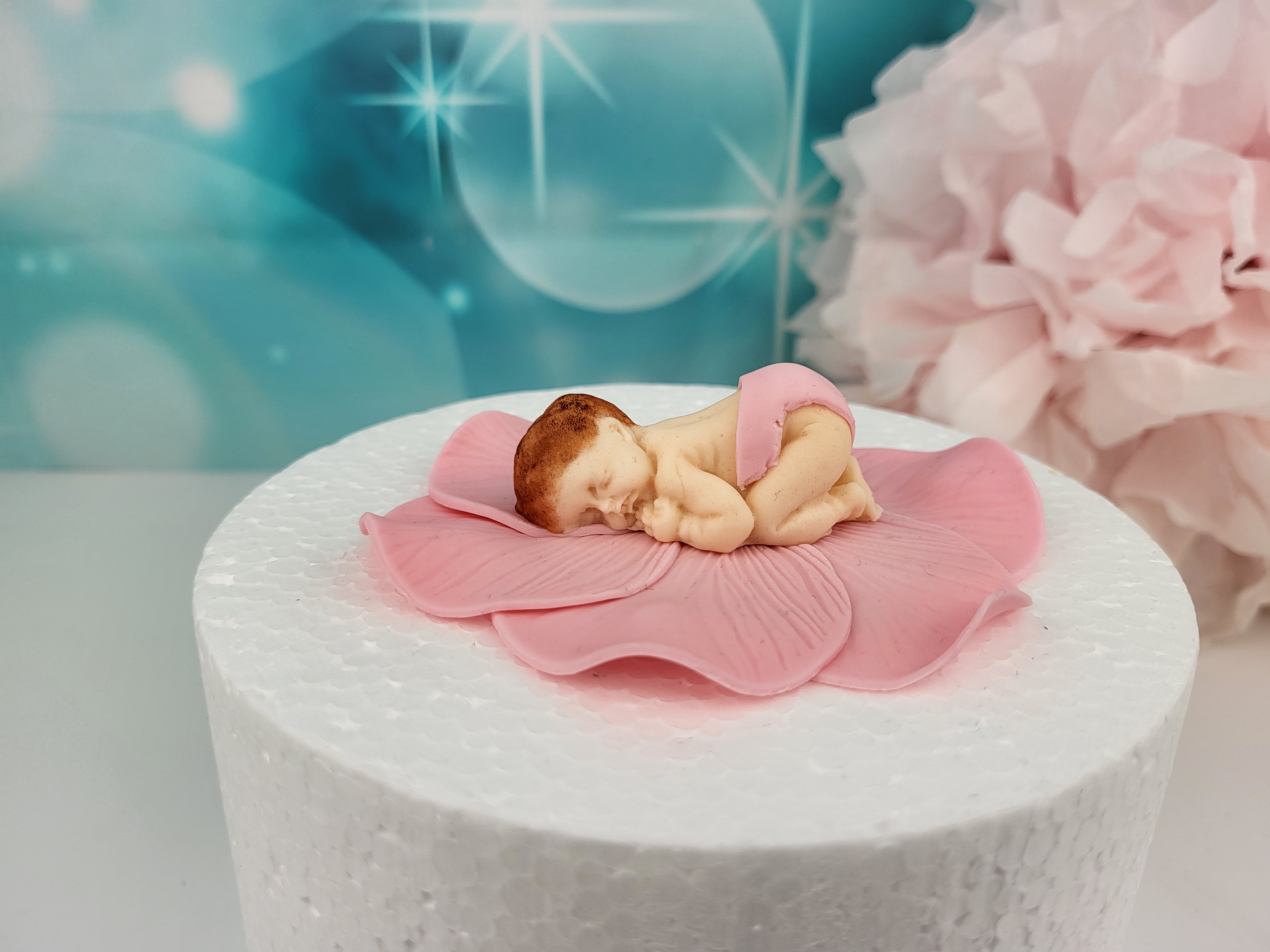 Dieses Baby ist handgemacht aus Zuckermasse und mit Farbpaste eingefärbt.