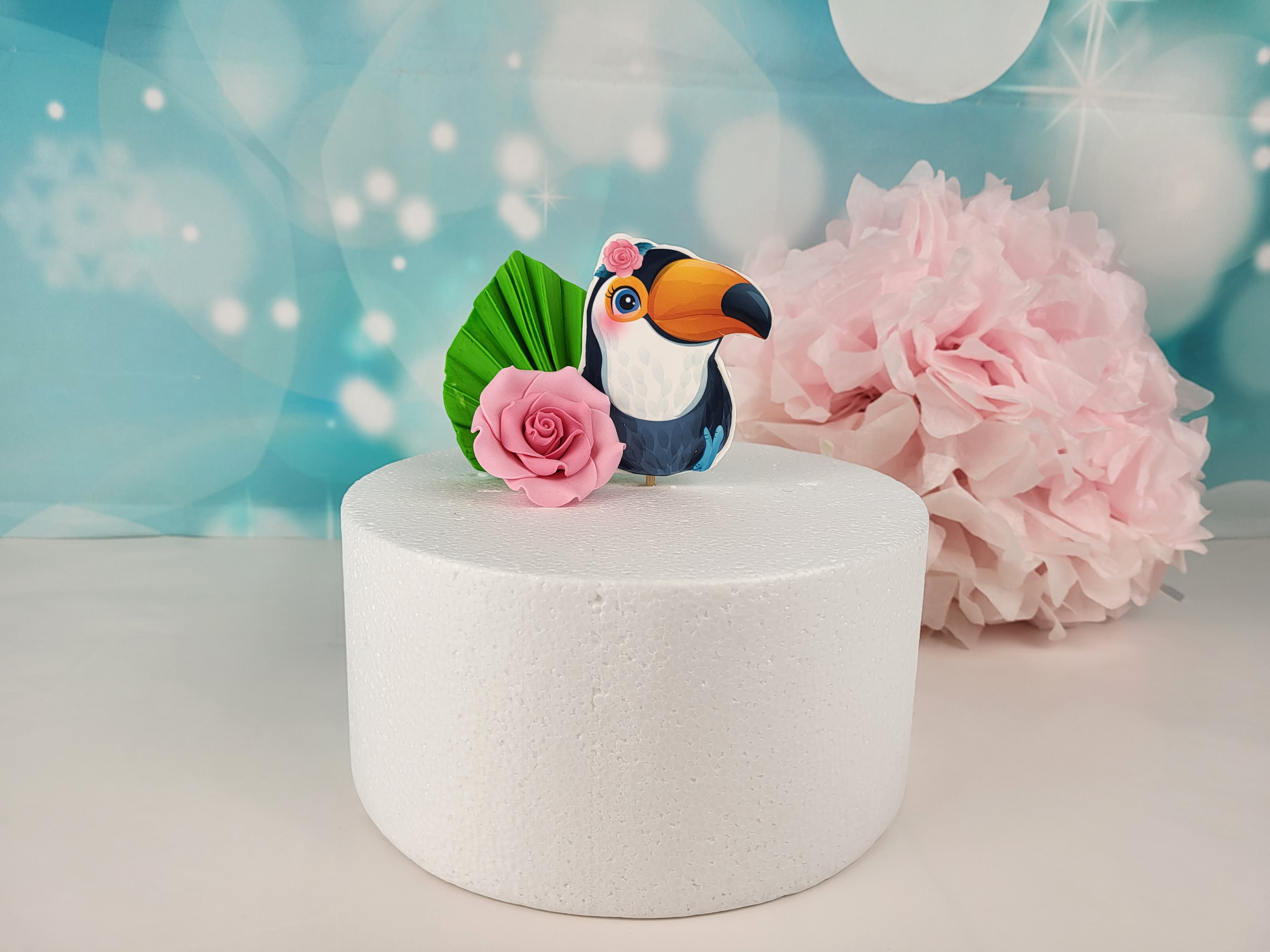 Cake Topper Tukan mit Blatt und Rose