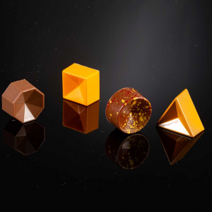 Moderne, regelmäßige Linien, die eine Evolution in der Welt der Pralinenformen darstellen.