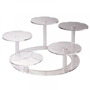 Tortenständer aus Plexiglas mit 5 Platten von 26 cm Durchmesser. Ideal, um raffinierte Buffets für Zeremonien und Geschäftstreffen einzurichten oder einfach, um Ihre Kreationen in Ihrem Lokal zu präsentieren. Die Elemente, die es komponieren sind austauschbar, um Spiele von Höhen und Proportionen, die immer anders sind zu schaffen.
