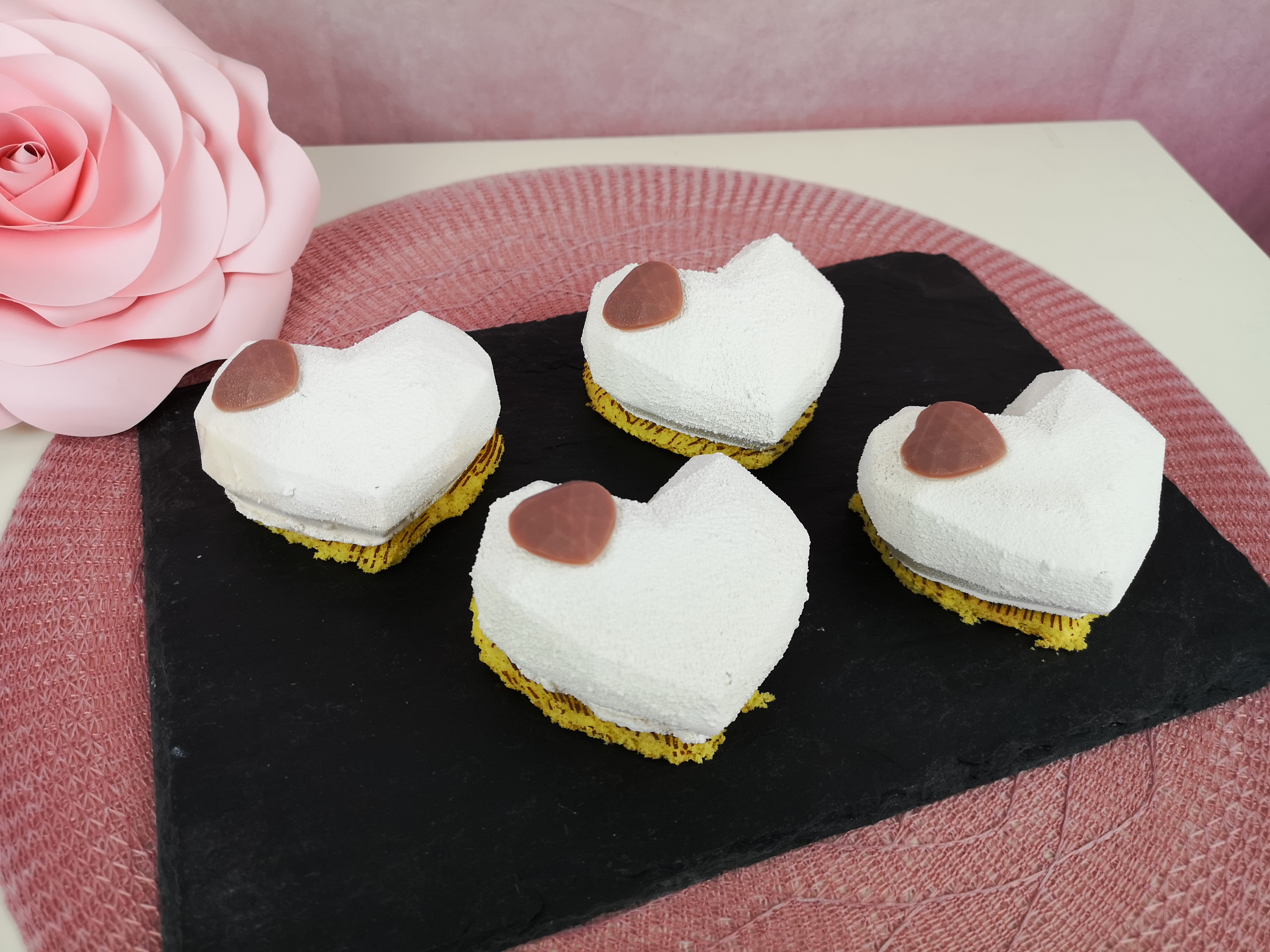 Im Lieferumfang enthalten ist eine Silikonfom mit 6 Herzen und ein Kunststoffausstecher, mit dem Sie Einsätze und Dessertböden fertigen können, die perfekt zur Form passen.