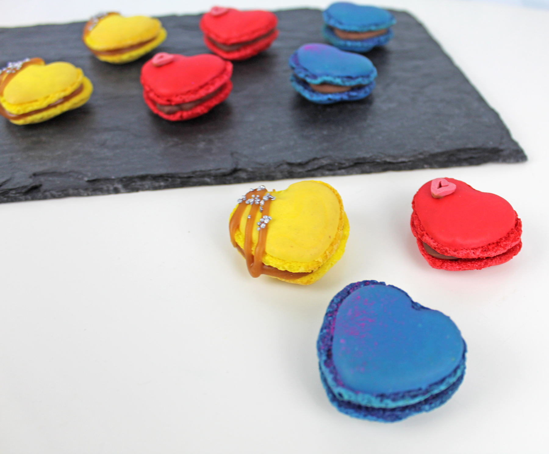 Herz Macarons Kit, bestehend aus einer Silikonmatte Lebensmittel 100% Made in Italy. Jede Matte, die gegen Temperaturschwankungen von -60 ° C bis +230 ° C resistent ist, besitzt 42 Hohlräume in Form des Herzens, wodurch 21 köstliche und süße Macarons hergestellt werden können.